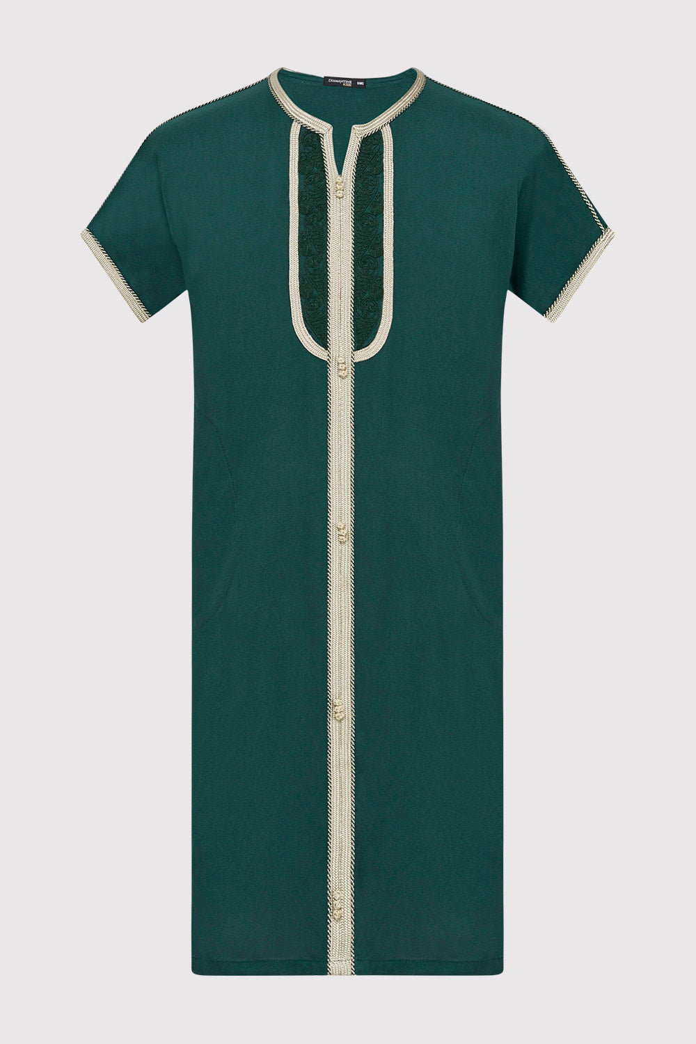 Dress your child in a traditional look with the Sami gandoura, designed for a formal look. In a choice of four colourways, the short-sleeved gown is perfect to layer over trousers and finished with smart contrast pipe edging.