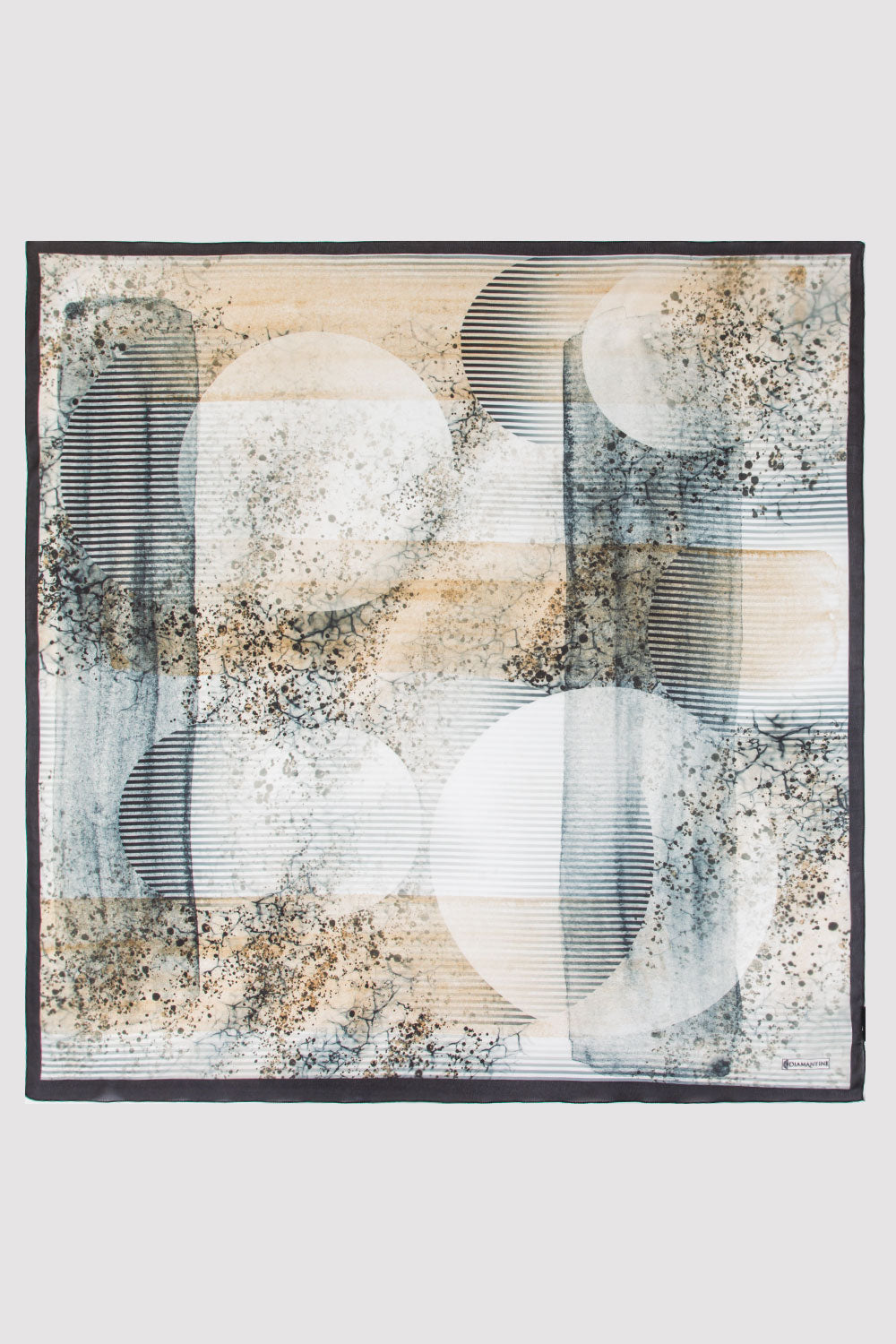 Crafted in a luxuriously soft silk satin, this beautiful silk scarf‰۪s statement is the contrasting hues between beige and black on the printed design. With stripes and nature-inspired prints collaborating together, it‰۪s a unique piece that can update any look this season.
