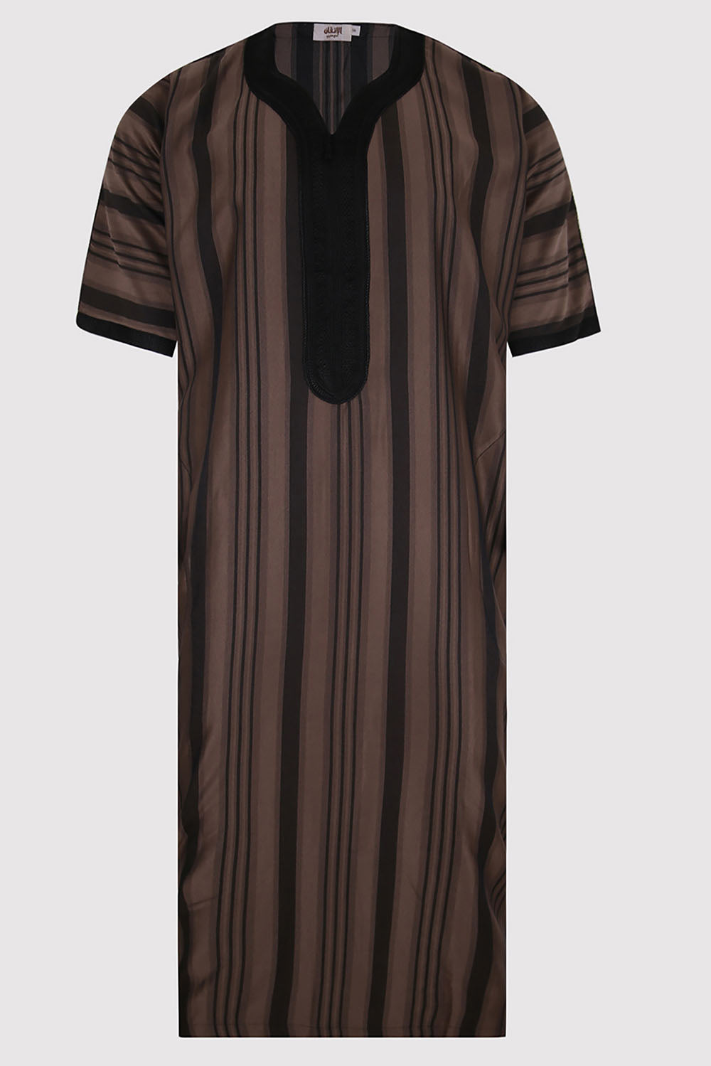 Striped Short Sleeve Mens Gandoura Thobe In Dark Brown