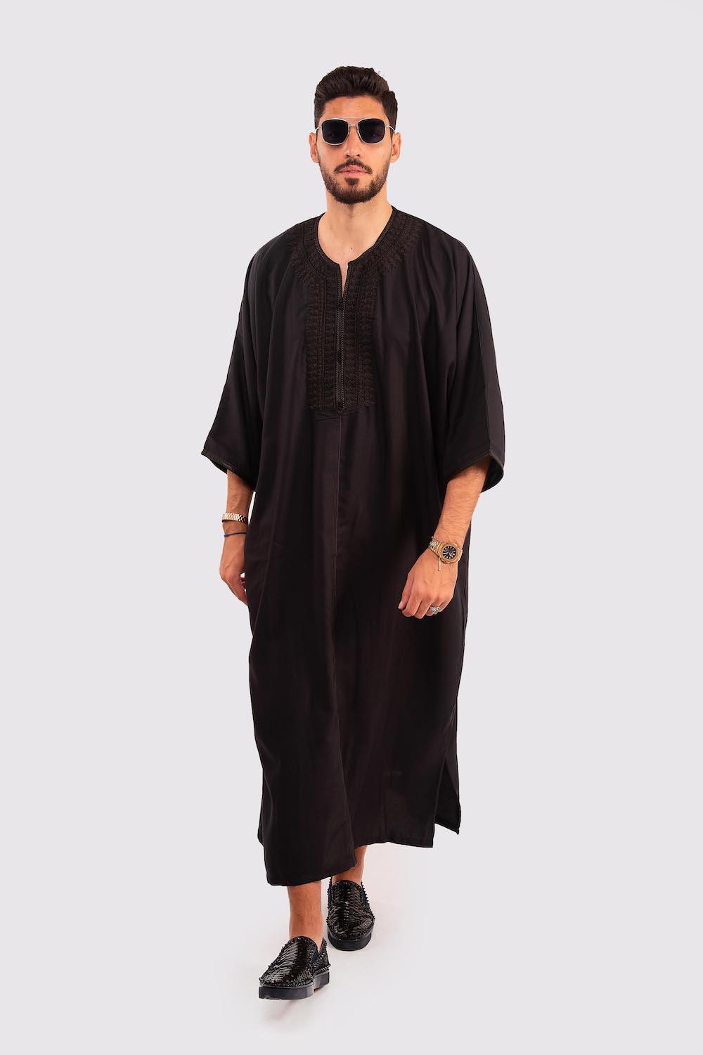 Gandoura Rais Men's Long Gandoura Robe Long Sleeve Thobe in Black