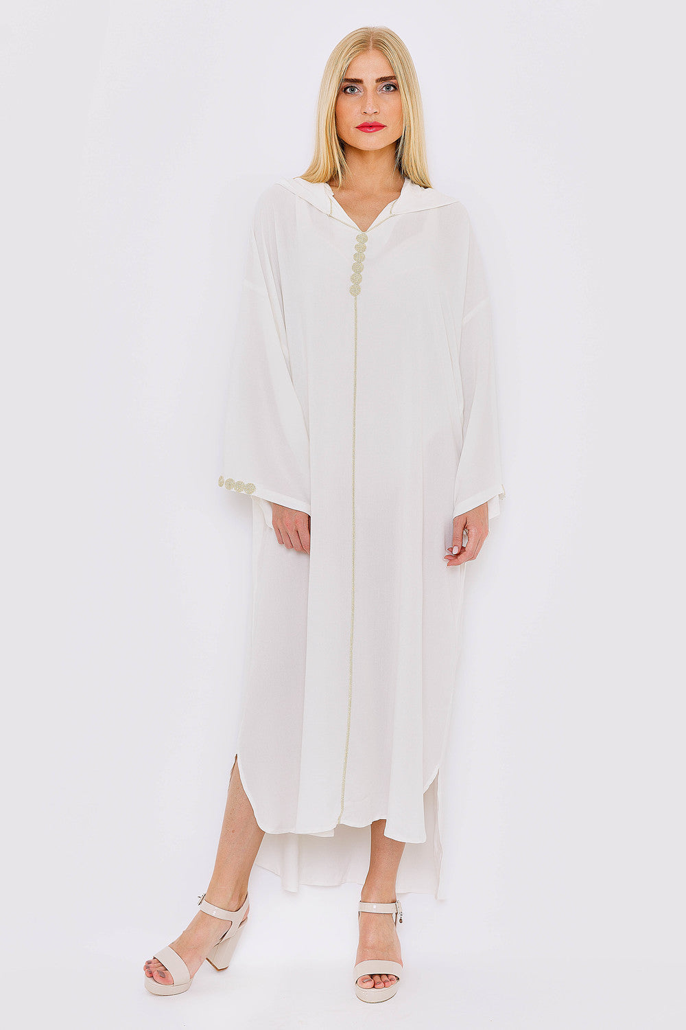 Djellaba Cihan Long Sleeve Hooded Midi Dress Kaftan in White