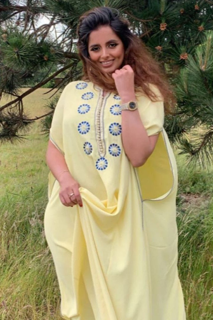 Kaftan Fenna Split Sleeve Tunic Loose Maxi Dress Gandoura in Yellow