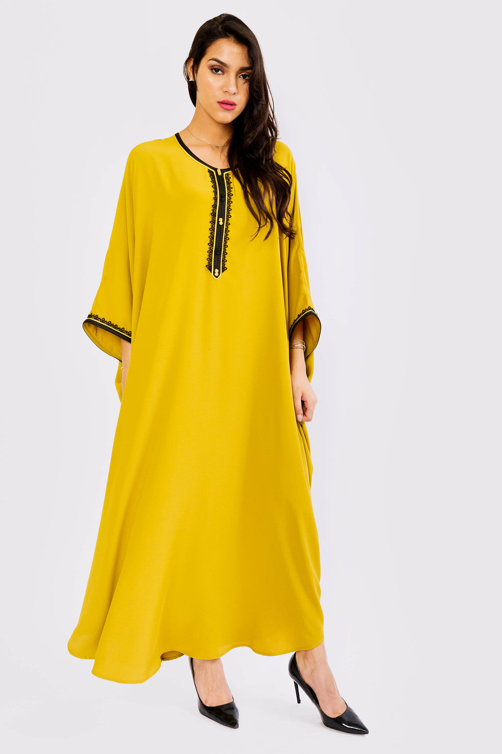 Kaftan Jeremy Cropped Sleeve Loose Maxi Dress Gandoura Abaya in Lime