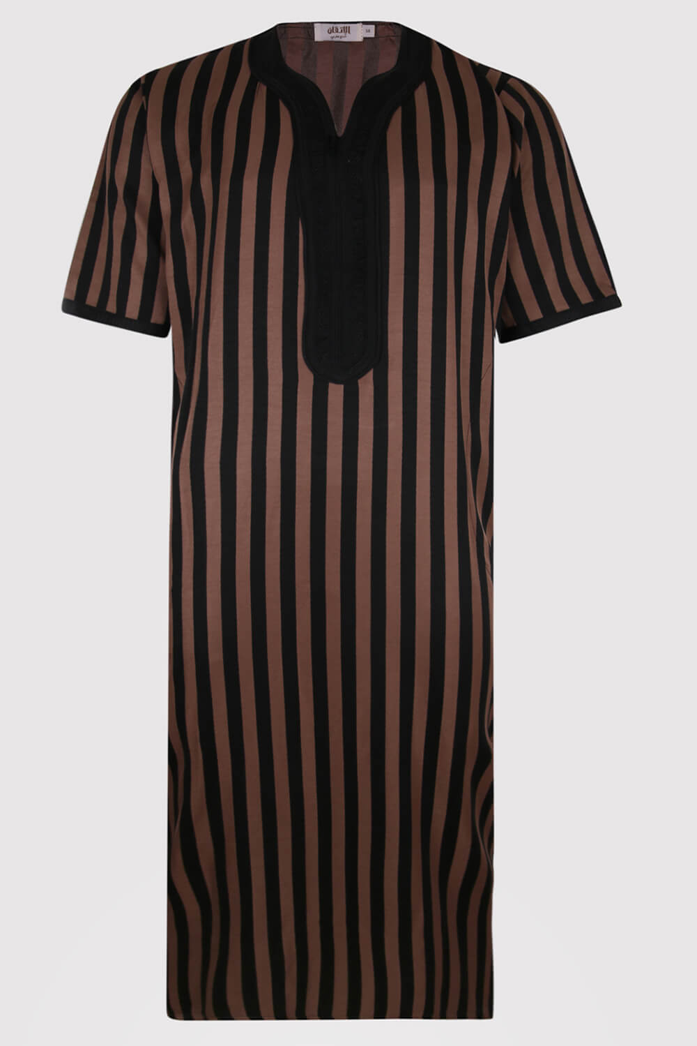 Gandoura Napoli No2 Men's Short Sleeve Striped Thobe in Black