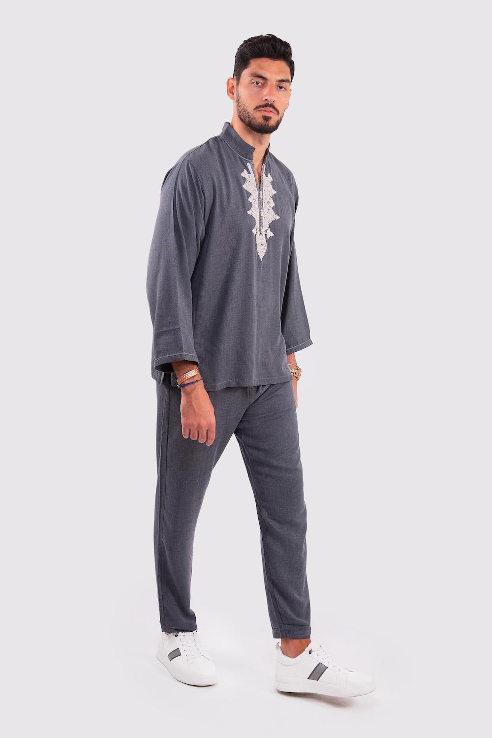 Azhar Men's 2-Piece Jabador Top & Trousers Set in Grey