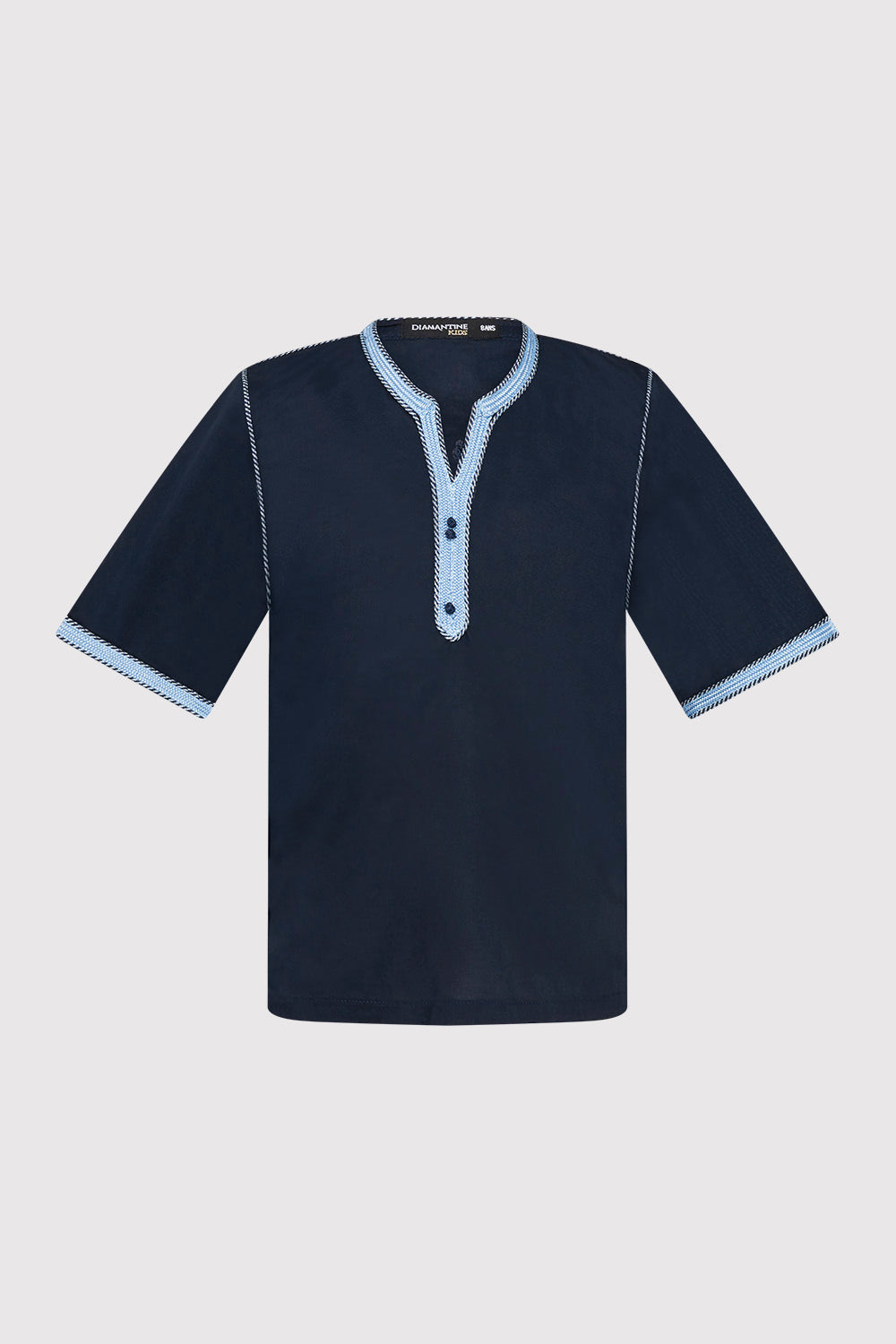Bilal Boy's Cropped Sleeve Contrast Trim Tunic Top in Marine (2-12yrs)