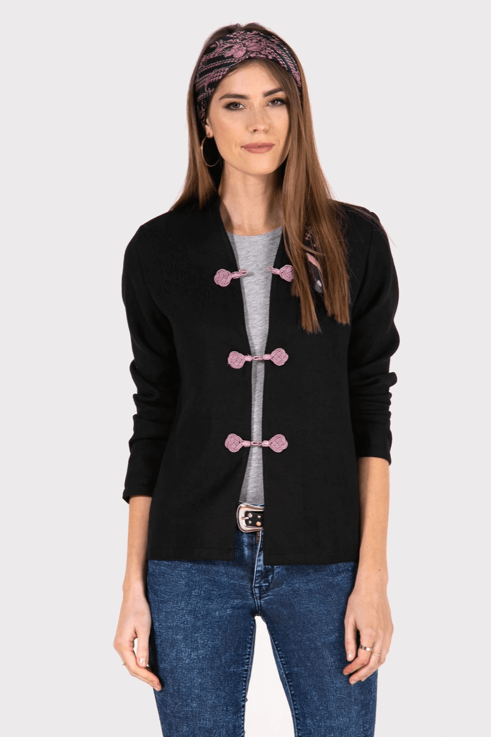 Frankie Button-up Long Sleeve Cardigan Jacket in Black