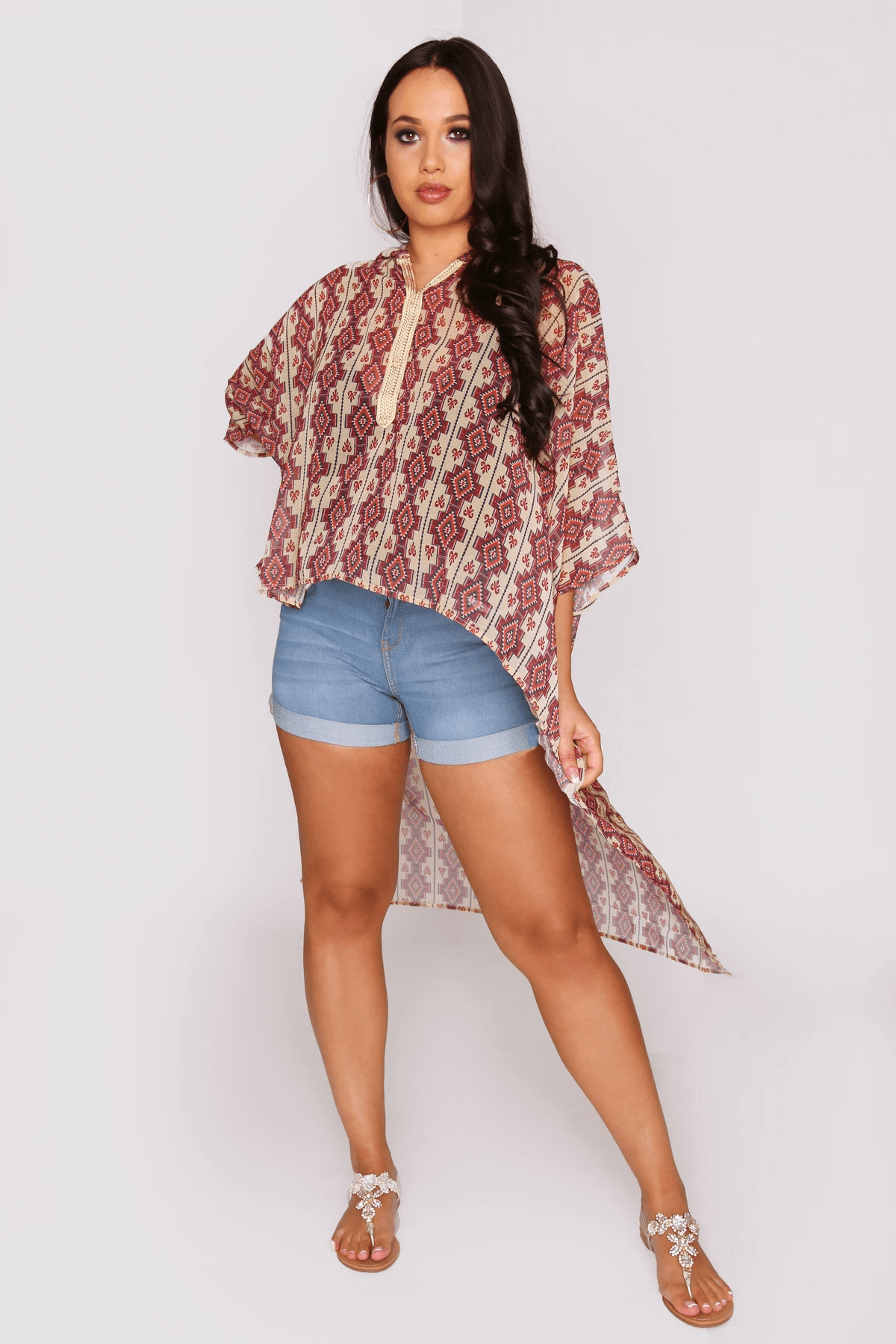 Give your wardrobe a summery twist with this lightweight statement print top from the new collection. With a high low hemline that makes it perfect to team with anything from skirts to denim shorts or even swimwear, style the Gabriela top however you like. With a classic hood and embroidery, embrace a touch of Morocco.