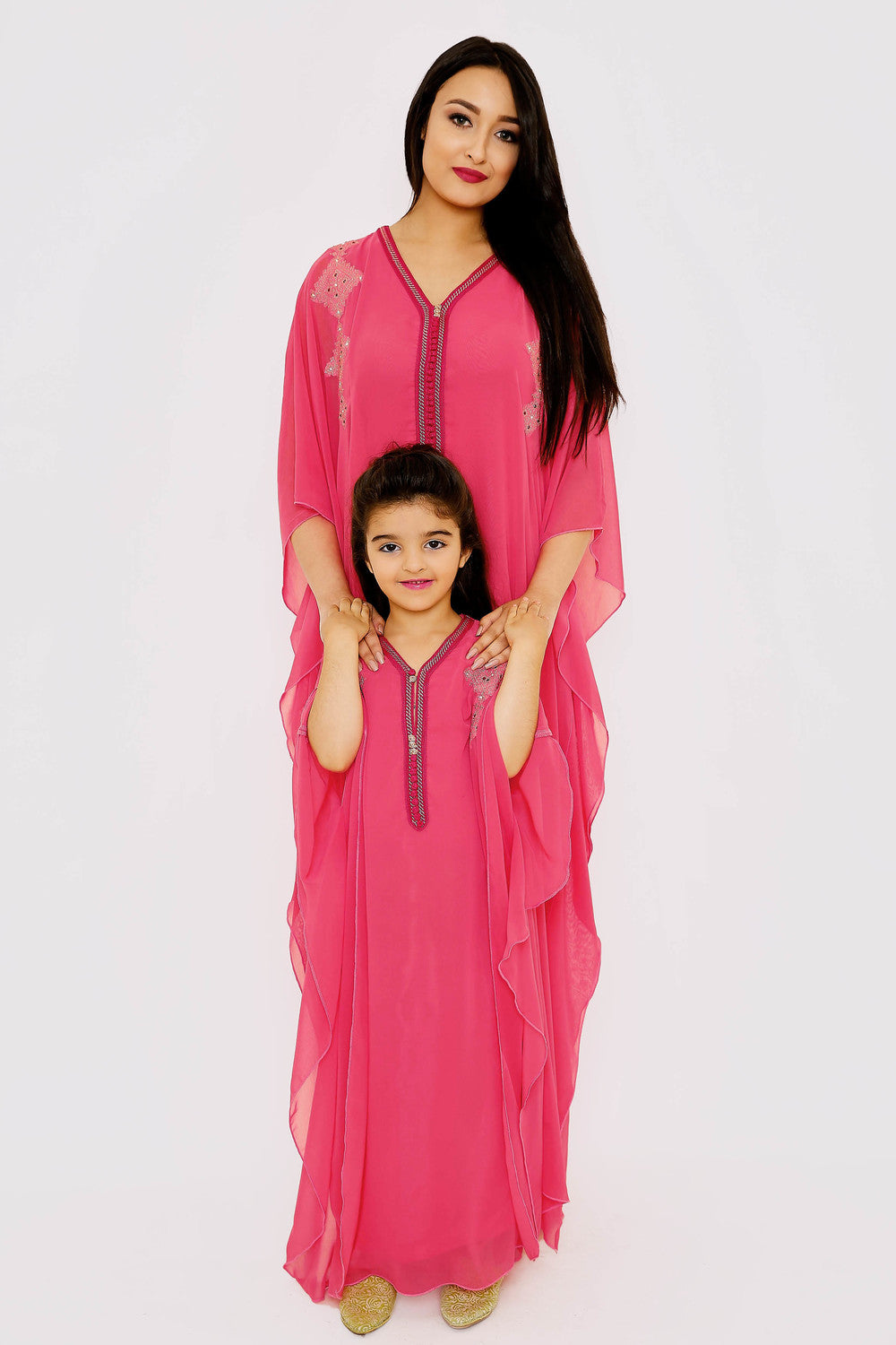 Gandoura Iklil Jr Girl's Long Chiffon Maxi Dress Kaftan in Raspberry