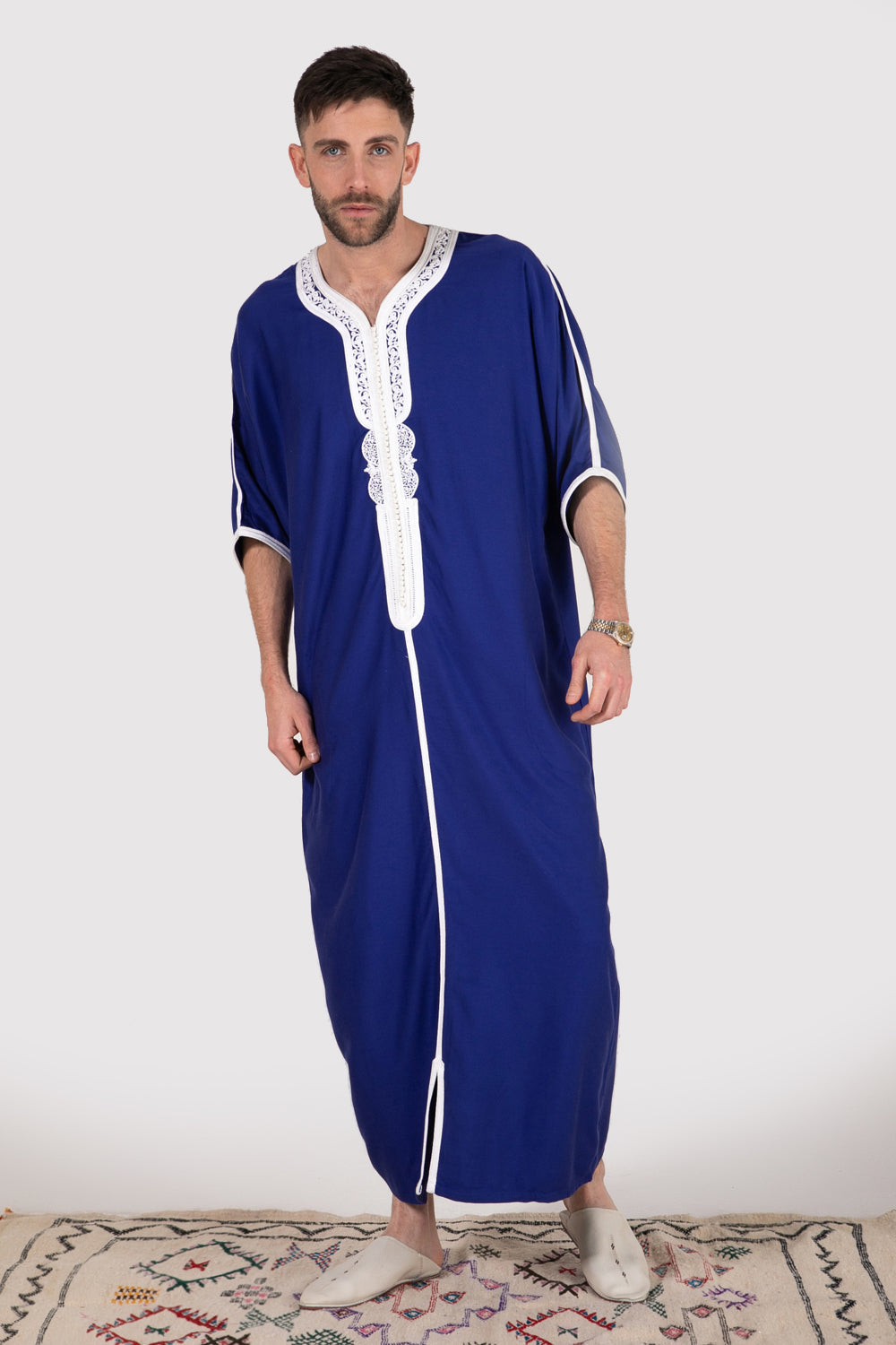 Gandoura Imrane Men's Short Sleeve Robe in Blue - diamantine-uk