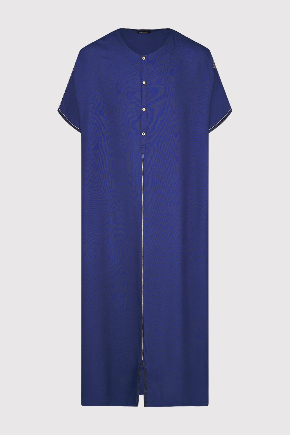 Gandoura Panda Men's Short Sleeve Long Button-Up Robe Thobe in Marine