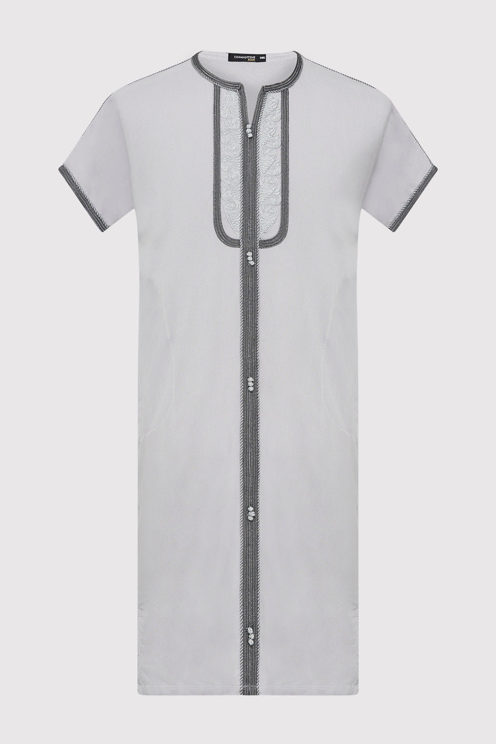 Dress your child in a traditional look with the Sami gandoura, designed for a formal look. In a choice of four colourways, the short-sleeved gown is perfect to layer over trousers and finished with smart contrast pipe edging.