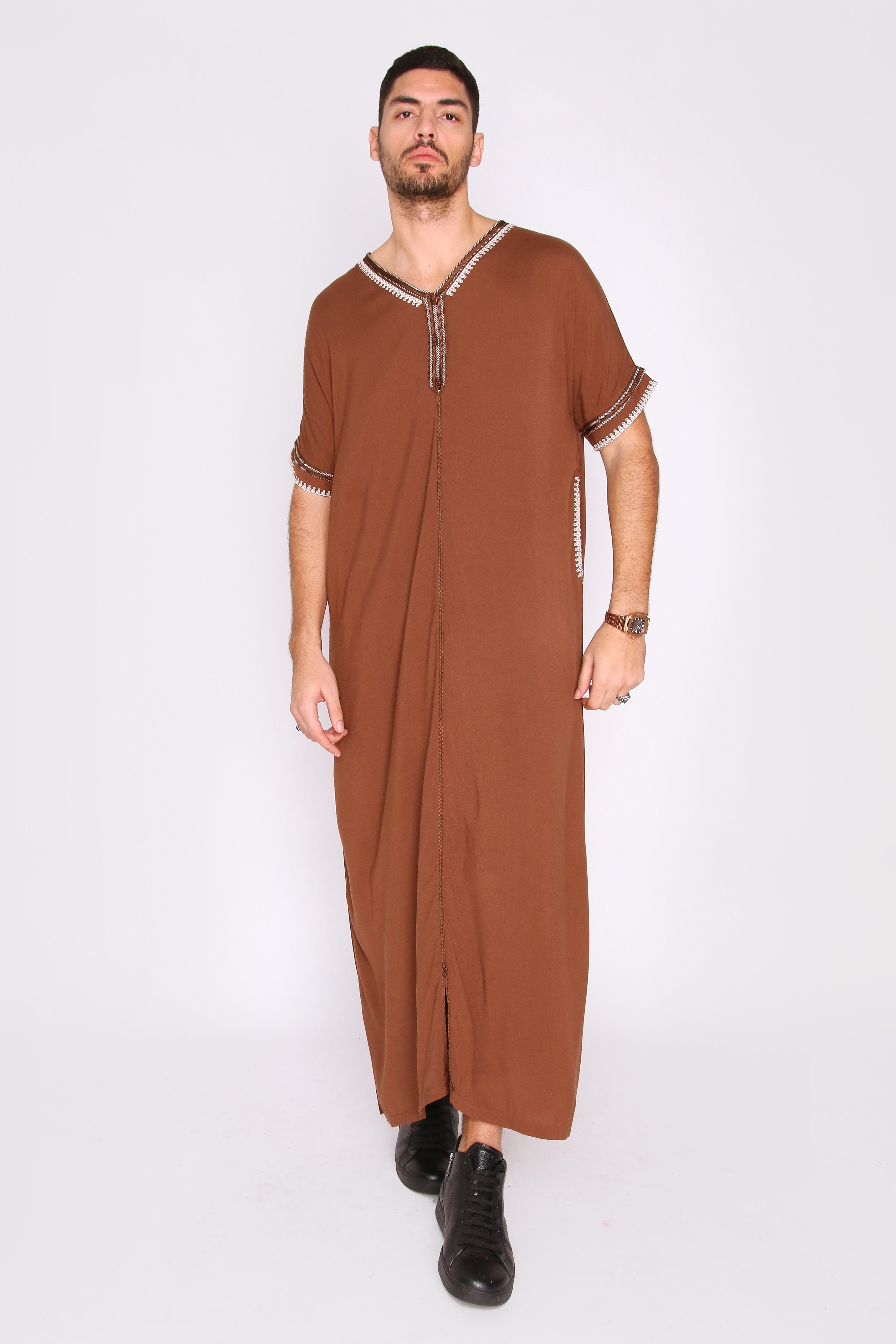 Gandoura Sevilla Men's Short Sleeve Full-Length Pocket Robe Thobe in Brown