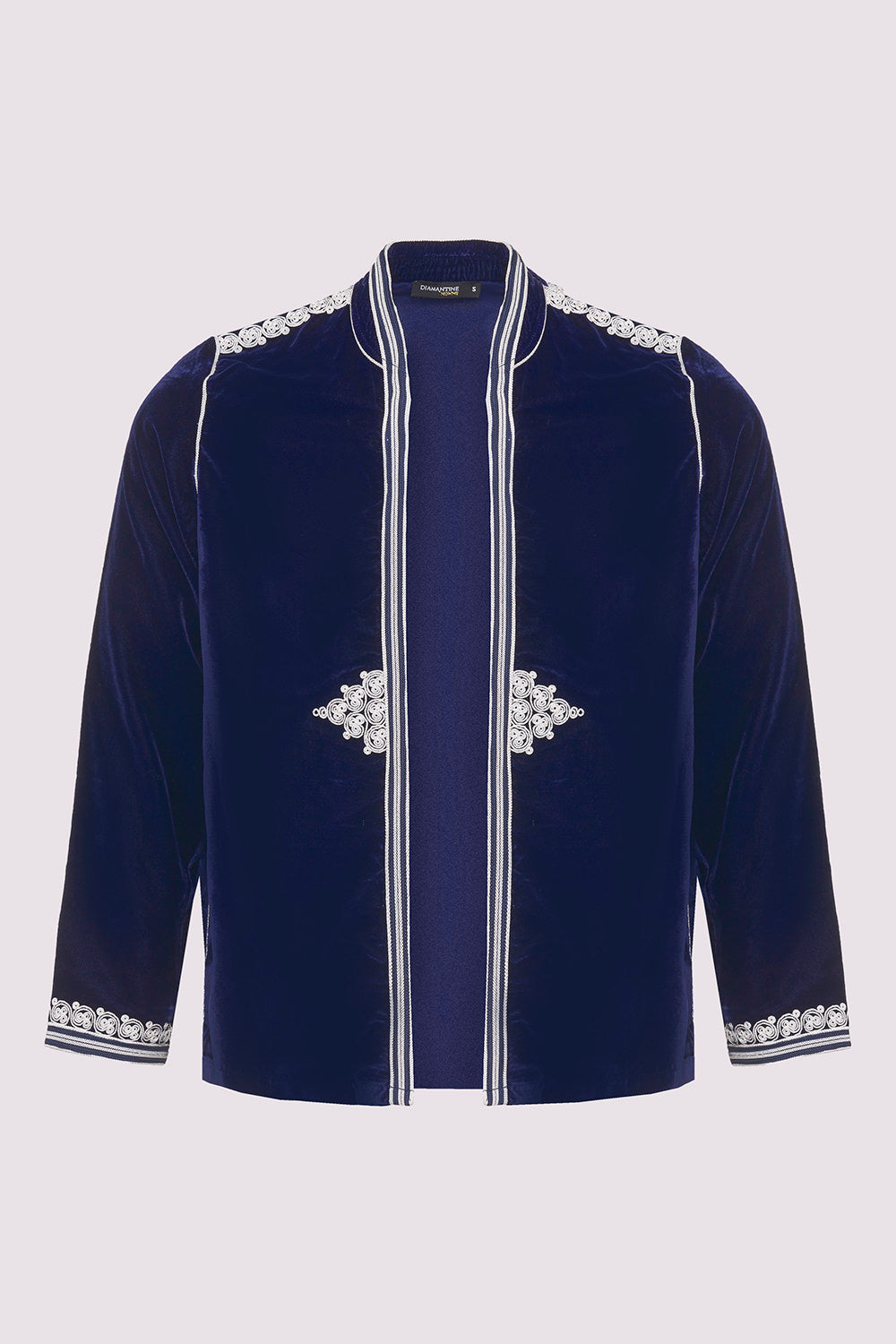 Gondole Velour Embroidered Long Sleeve Jacket in Marine Blue
