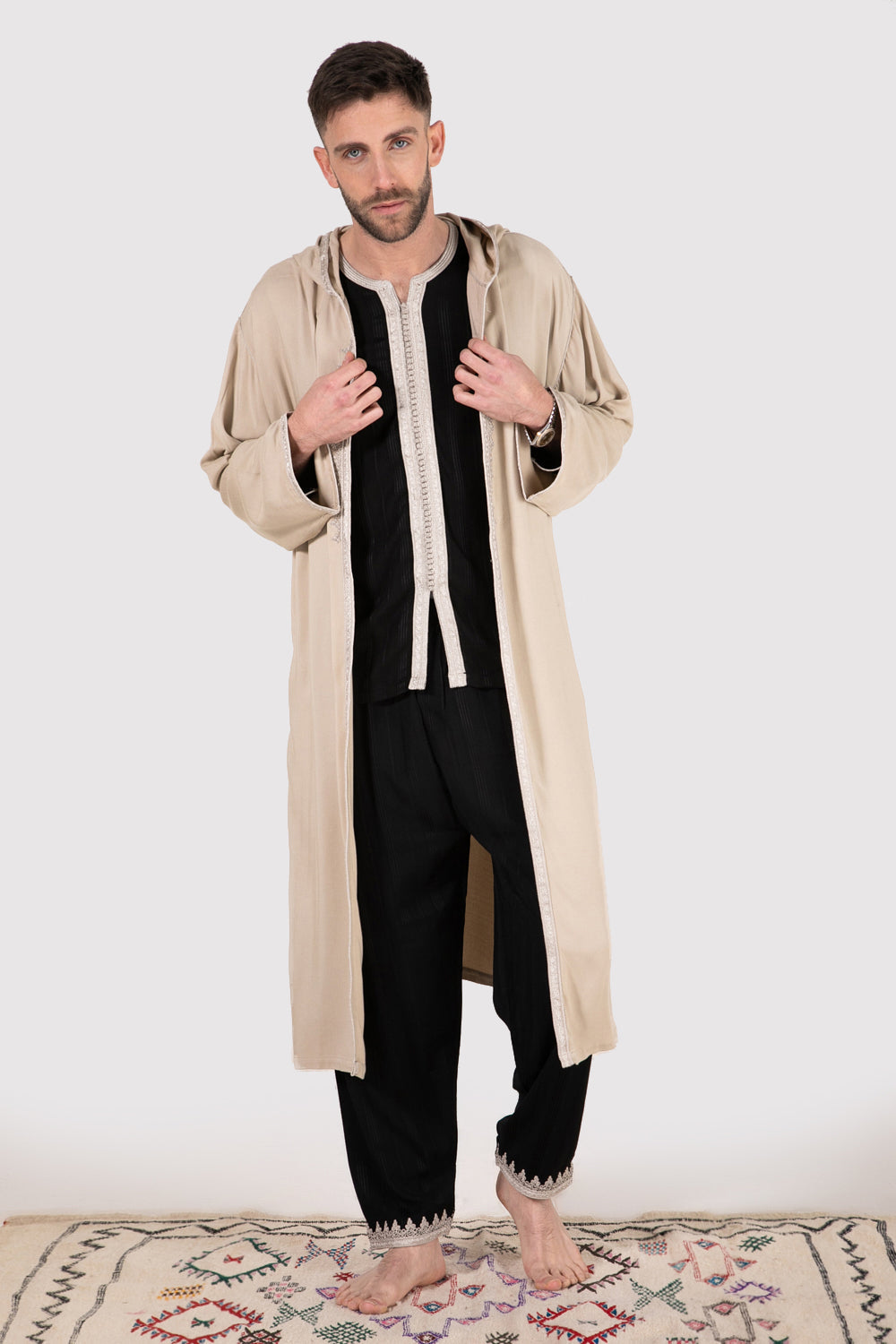 Jabador Faris Men's Long Sleeve Top Hooded Jacket and Trousers Co-Ord Set in Beige