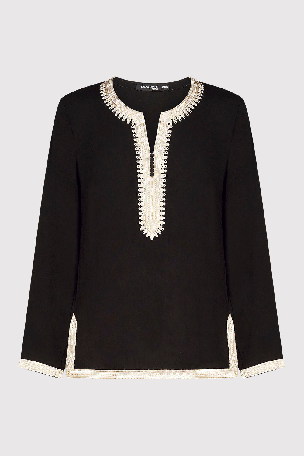 Jabador Ghassan Embroidered Boy's Tunic Top and Trousers Co-Ord Set in Black