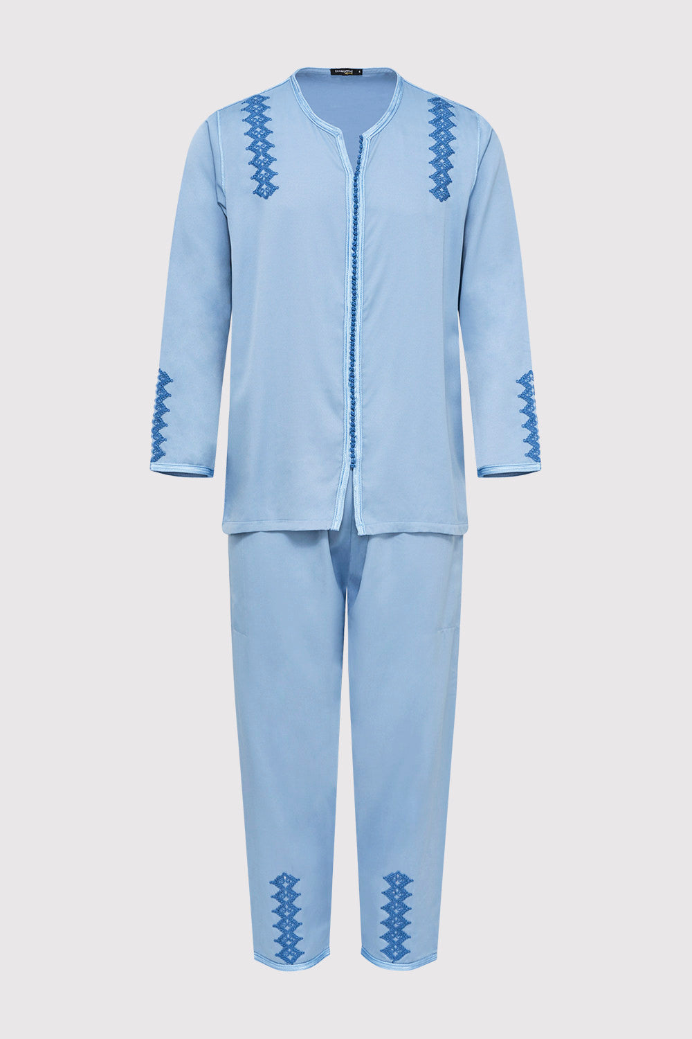 Jabador Kotba Men's Long Sleeve Tunic Embroidered Top and Trouser Co-Ord Set in Blue