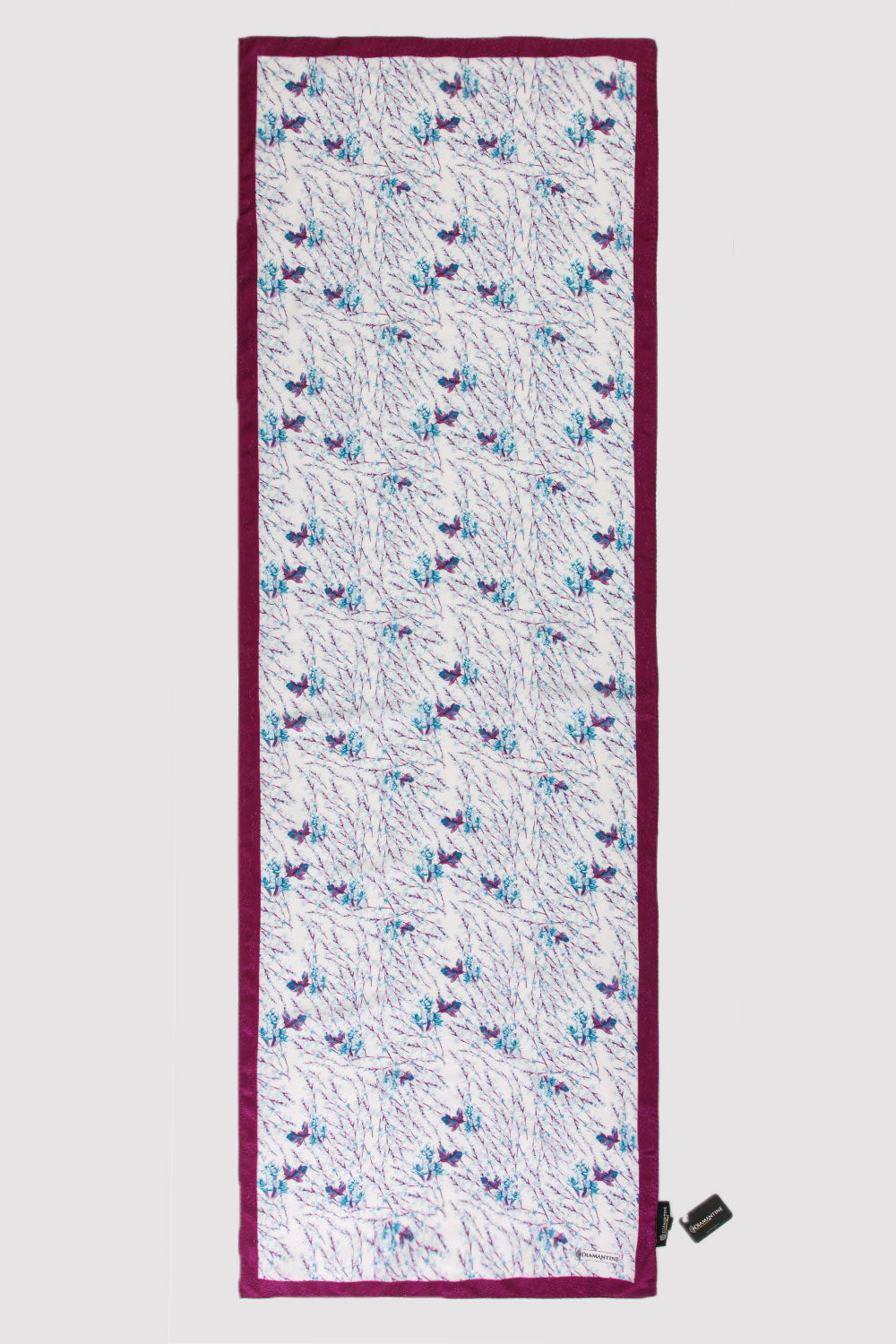 Opt for delicate subtlety with this stunning printed scarf from the new collection. In a unique colour palette of rich prune combined with flashes of bright turquoise, add some chic detail to any look. Style in a number of ways, over your shoulders, around the neck or over your hair for a look that suits.