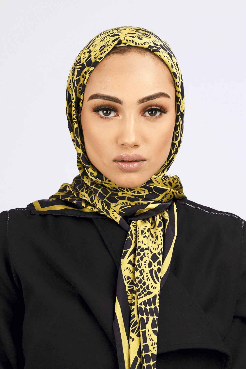 Make a bold statement with this eye-catching black and lime green print silk satin scarf, perfect to wear over the hair, around the neck or tied to your tote. Finished with a striking lime green and black stripe trim, add to a monochrome look for a splash of colour or team with neutrals.