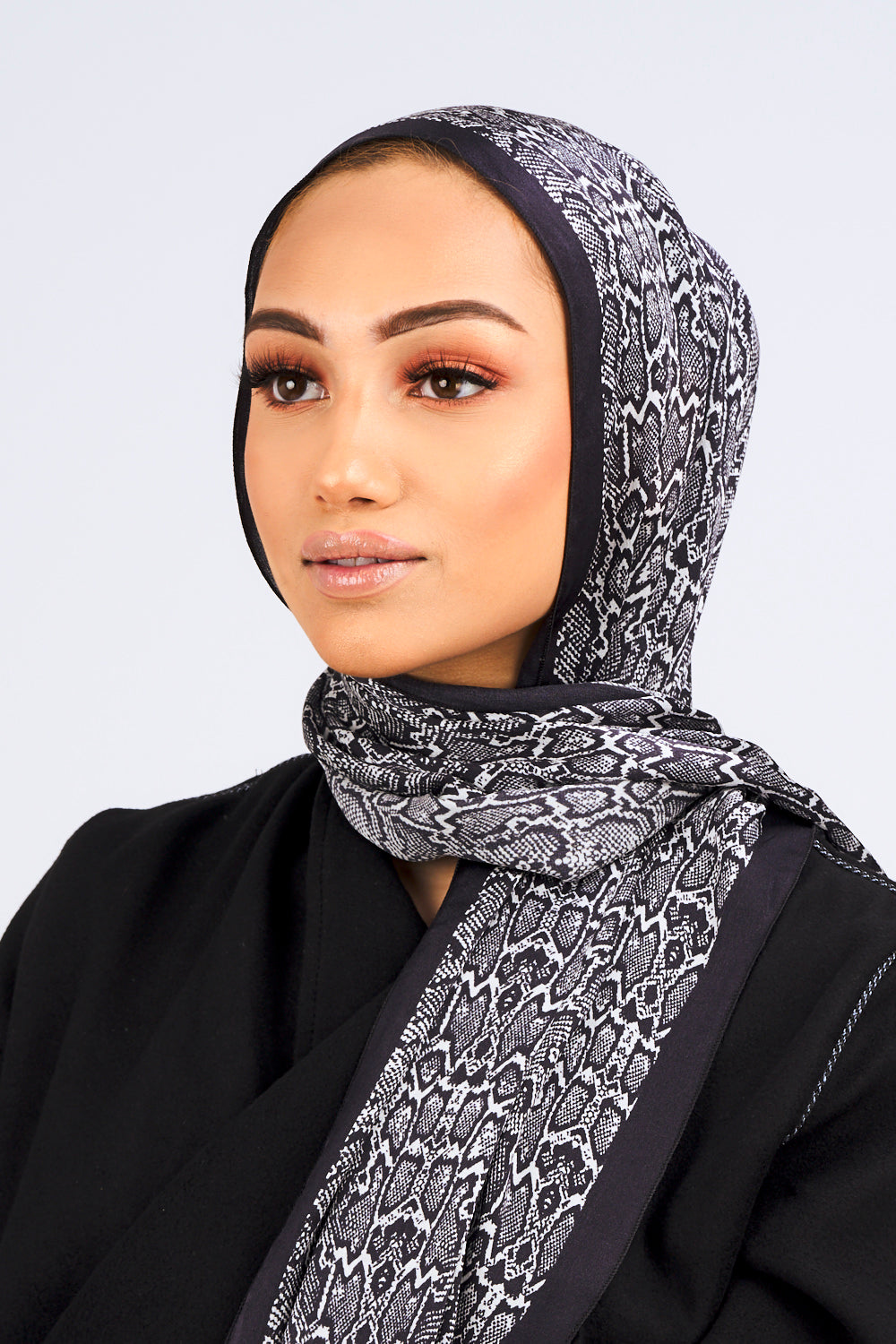 Give your style a monochrome makeover with this on-trend leopard print scarf in a black and white palette. Perfect to wear over the hair, you can also style this silk satin scarf over the shoulder or even add to a simple bag for a pop of on-trend statement print.