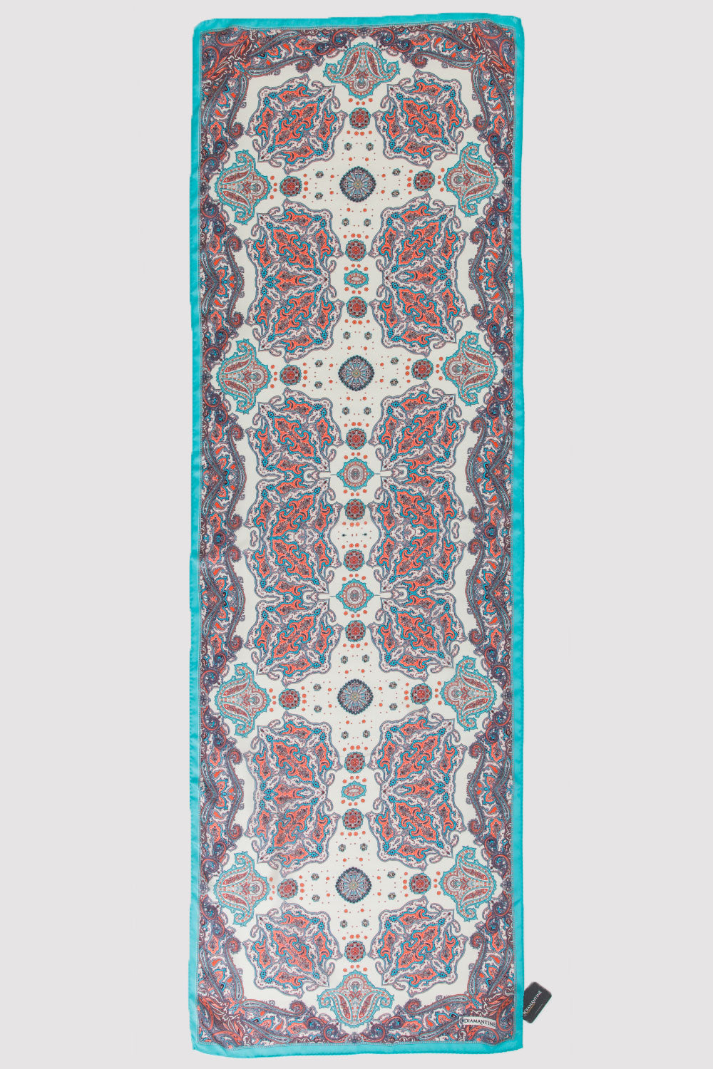 A beautiful combination of both paisley print detailing and a unique colour palette, this stunning silk satin scarf adds both style and brightness to any look for both day and night. It can be styled in a plethora of different ways to work for you, making it the ultimate in versatile accessorising this season.