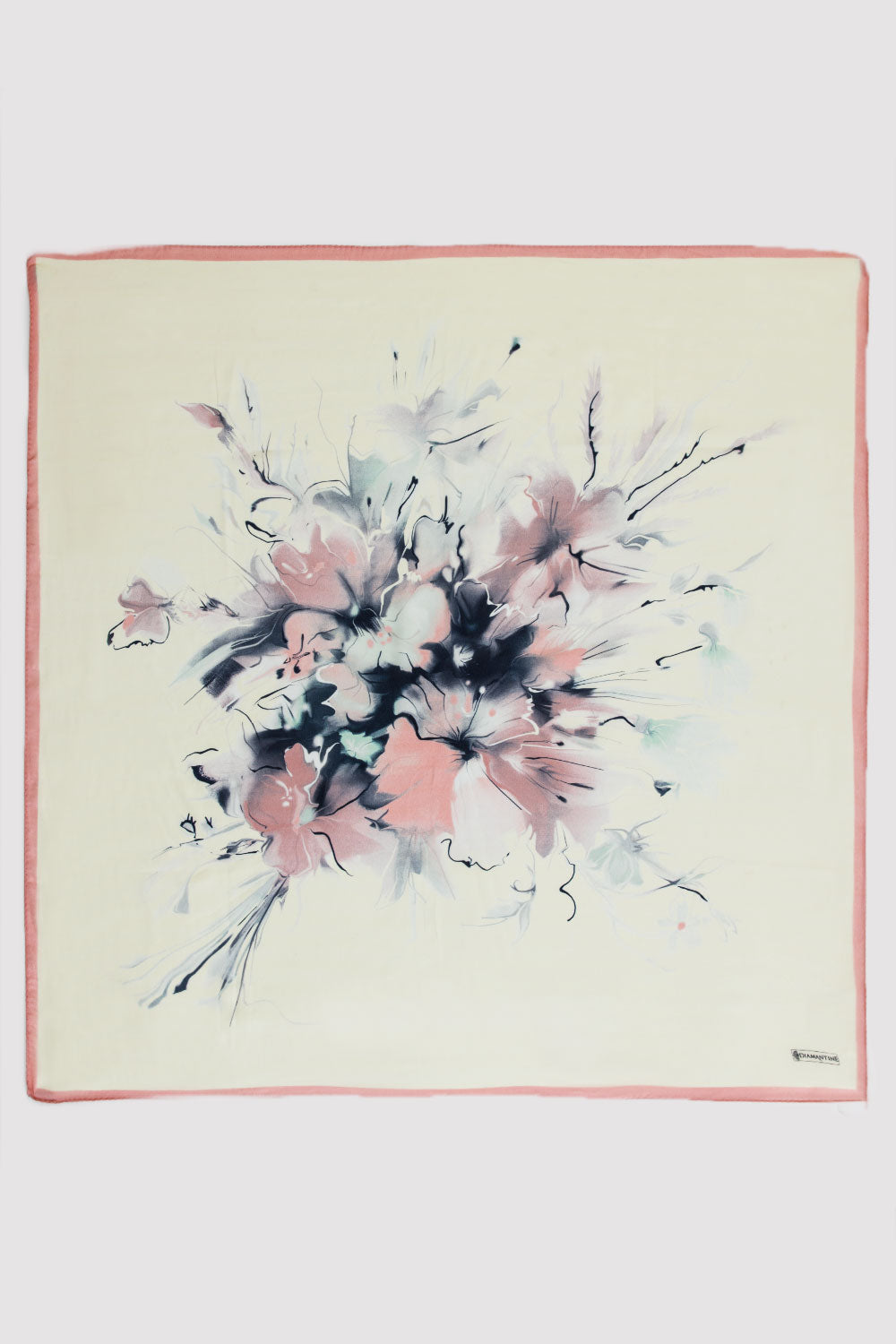A vintage-inspired palette forms this unique and elegant silk satin scarf, perfect to add to any look for both formal and casual occasions. Dusty soft pink and warm cr̬me is partnered with striking black accents, making it a versatile and effortlessly chic addition to your accessories collection.