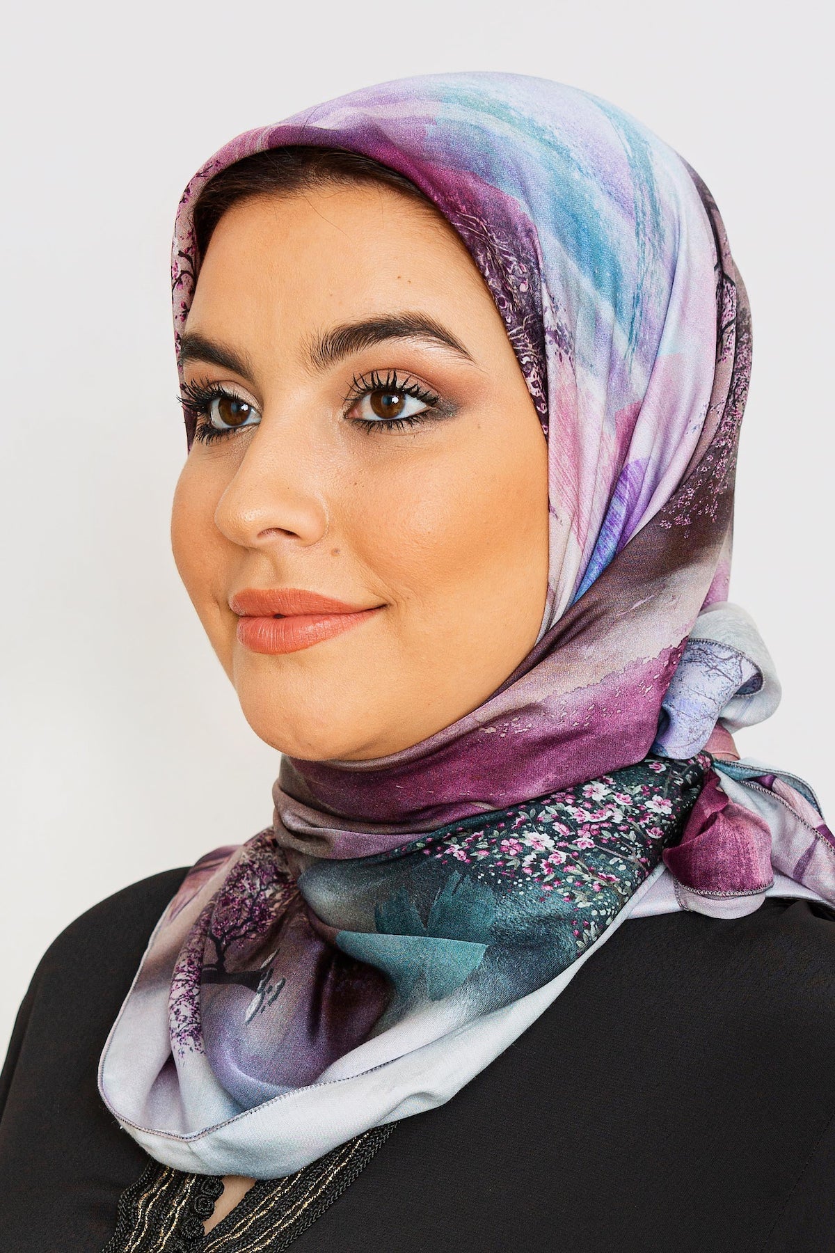 Women's Lightweight Head Scarf in Mauve Nature Print