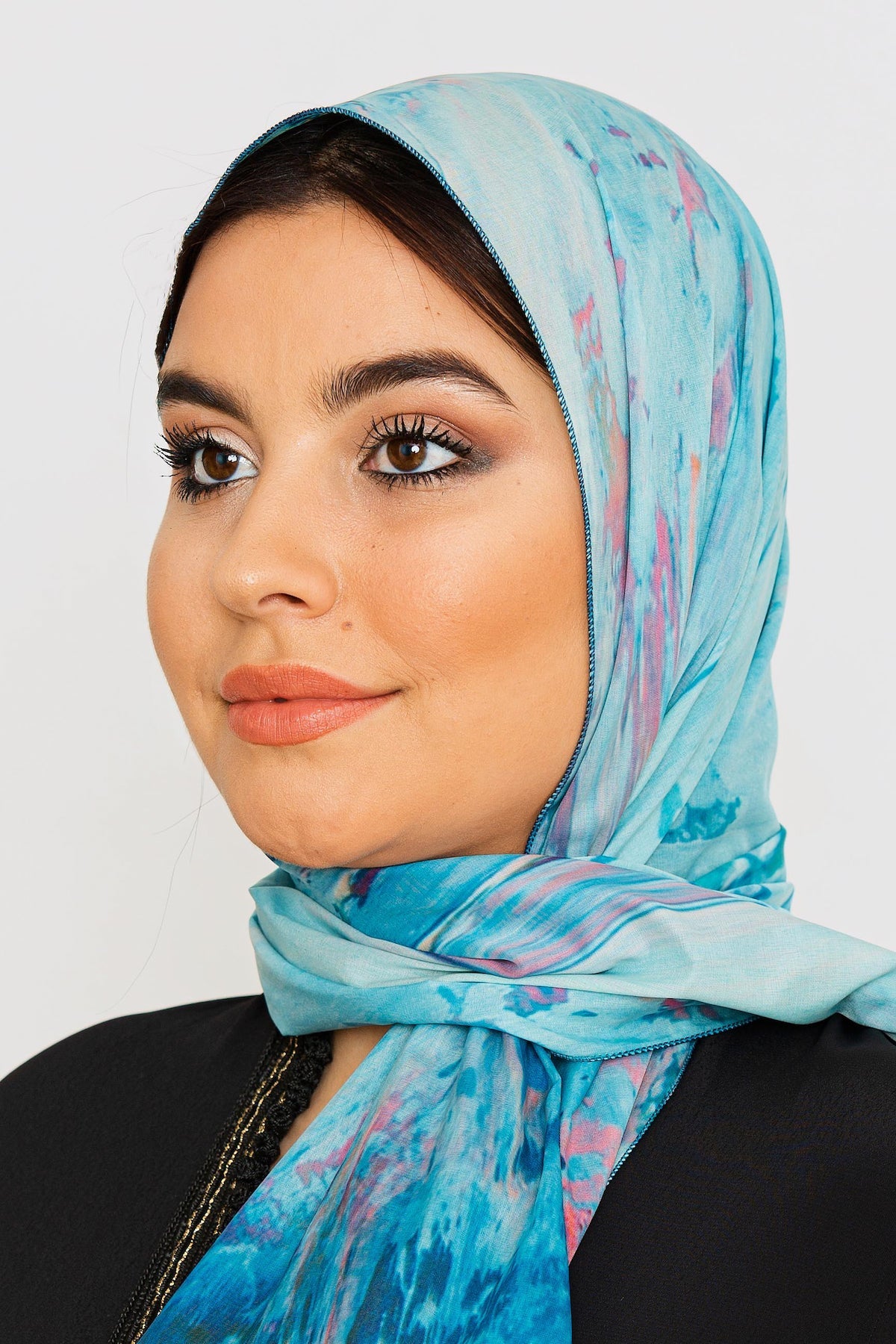 Women's Lightweight Large Head Scarf in Royal Blue Print