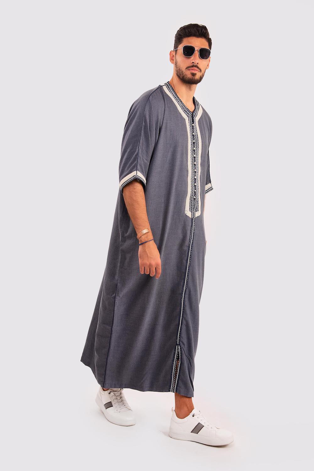 Zakaria Men's Cropped Sleeve Long Gandoura Thobe in Marine